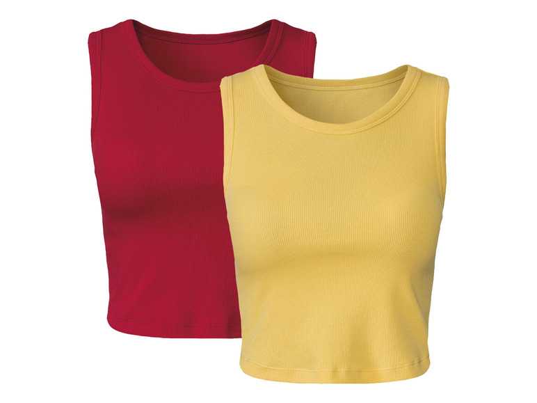 esmara® Dámsky krátky top s rebrovitým vzorom, 2 kusy (S (36/38), červená/žltá) - parametre produktu